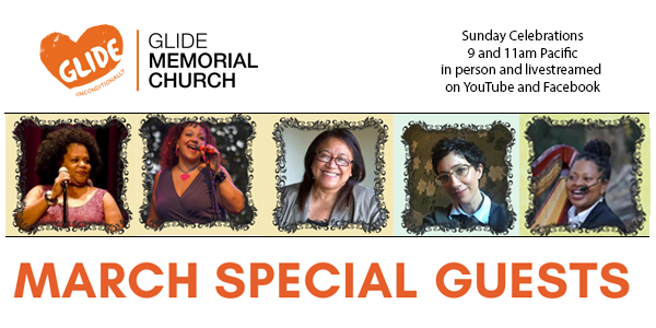 At Glide Memorial Church we honor the spirit of our literary ancestors, Janice Mirikitani, and Maya Angelou. They insisted that women create safe space and storytelling space while existing in the patriarch. Those womanist story spaces are still being carved out in spaces for insistent storytellers. Those justice story spaces are still being carved out. Those love story spaces are still being called out. Join us for a month of stories by women, about women, and for women. Join us for a look at unconditional love, open and affirming sanctuary, radically inclusive community, extravagantly welcoming church, and racial and social justice through the lens of Women’s History Month!