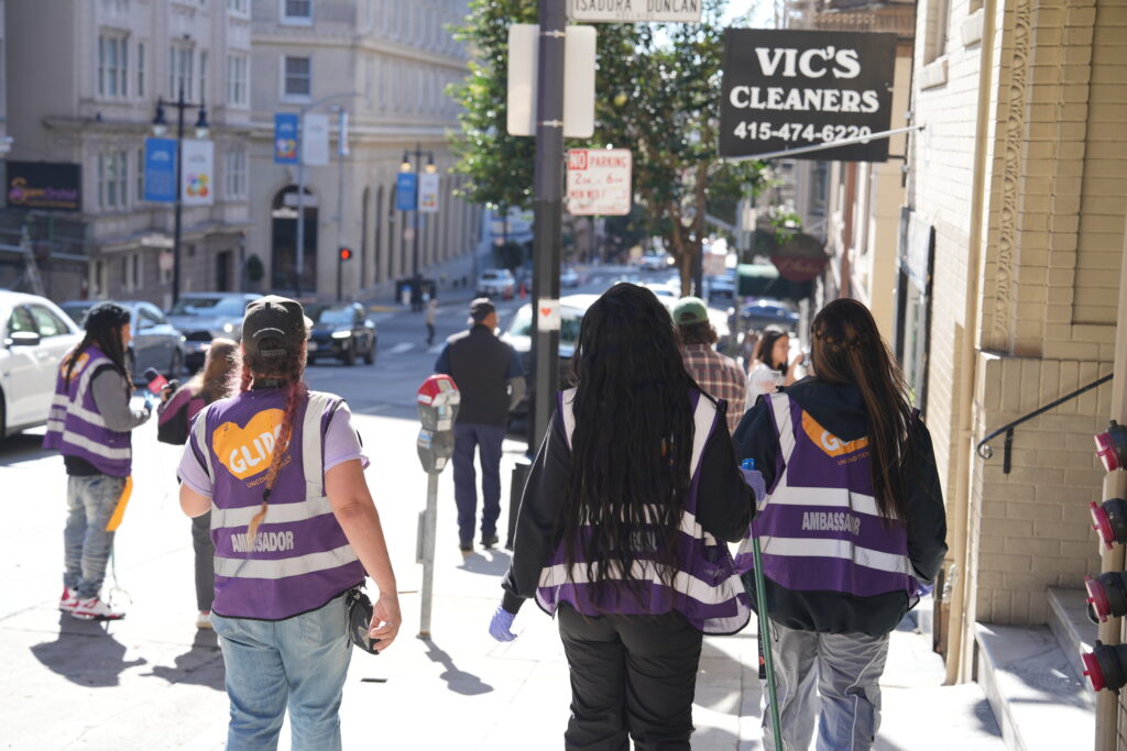 “When you’re ready, I’ll be here,” Jamika explained to a person who was just waking up on the sidewalk at the corner of Jones and Ellis streets. “If you don’t see me, just look out for the purple vest or a GLIDE Whole Person Care van. When you see us, you’ll know help is coming.”